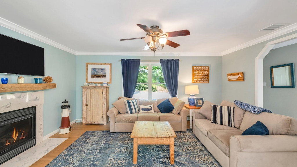 This coastal-style home contains everything a small group of friends or family could need to escape the hustle and bustle of everyday life. Decorated with the utmost charm, each space in this home is well-curated and polished to perfection. Thanks to the open-floor plan, the kitchen, living room, and dining are are all within the same, warm & inviting space. The living room contains two, deep-seated couches, a coffee table, a Smart TV, and a cozy fireplace for cool Summer evenings. Joyous, little beach signs and photos of the shore hang all throughout the home causing guests to immediately feel at ease upon entering. The dining room, complete with a lovely sailboat painting and a wooden, rectangular table set for six, is situated right next to the kitchen and sliding-glass door leading to the back deck. Undoubtedly ideal for meal times, this table also serves as a work-from-home location if need be. The Kitchen provides as much fashion as it does function, featuring brand new stainless-steel appliances and quartz countertops. This bright, vibrant space will make cooking a delight whether preparing a meal for one or entertaining dinner guests.