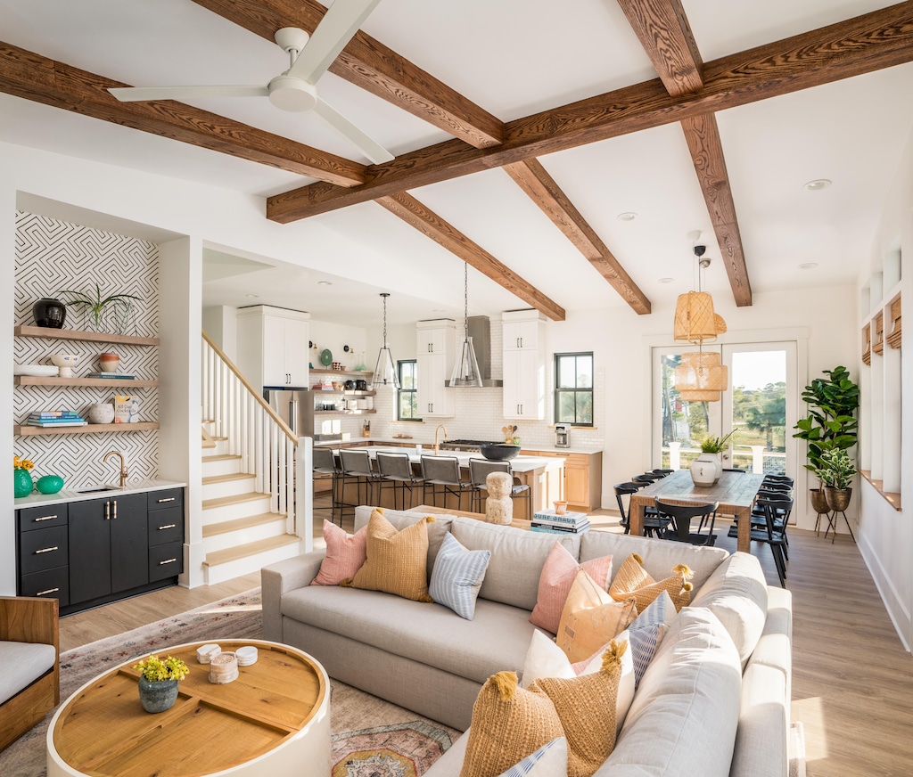 The interior of the home offers a relaxed yet fresh take on traditional coastal design, while still being fun and family-friendly. Vibrant colors are balanced by classic neutrals that create an inviting space both inside and out. This 5-bedroom, 4.5-bath home sleeps 12 guests and has a private, in-ground pool complete with outdoor shower- making it the perfect place to relax with family and friends.