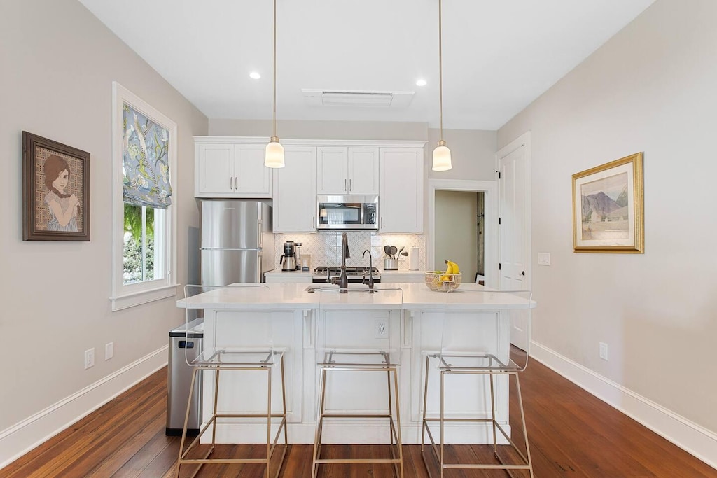 - Modern stainless steel appliances (dishwasher, microwave, coffeemaker)