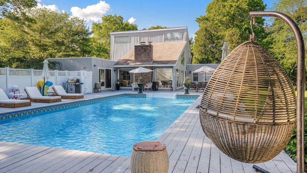 Contemporary home close to beaches with private pool, open floorplan, and gourmet kitchen in East Quogue.