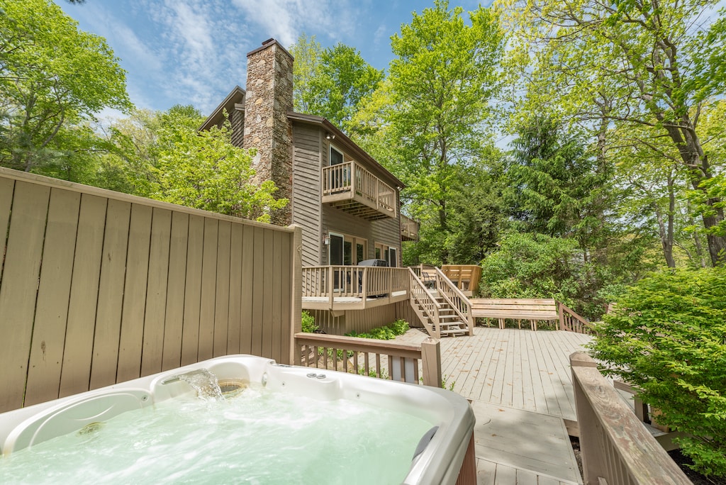 Fair winds and calm and relaxing days await with a stay at this beautiful lakefront property. With decks for days, this home was made for outdoor entertaining. Equipped with multi-level decks, a hot tub and built-in benches, there is room for everyone. Hike down the stairs to your private lakefront and dock to take the boats out for a day on the water. Warm summer evening can be spent around the campfire relaxing and reminiscing about the day and planning the days ahead. Winter nights can be enjoyed watching movies on the plush sectional in the sunken living room with the warmth and crackle of the fire place in the background as the snow falls outside. With fantastic restaurants, cute boutiques and other shops, and all kinds of on and off lake, summer and winter activities just a short drive from the home, you’ll have a fun and exciting stay at Fair Winds any time of the year.