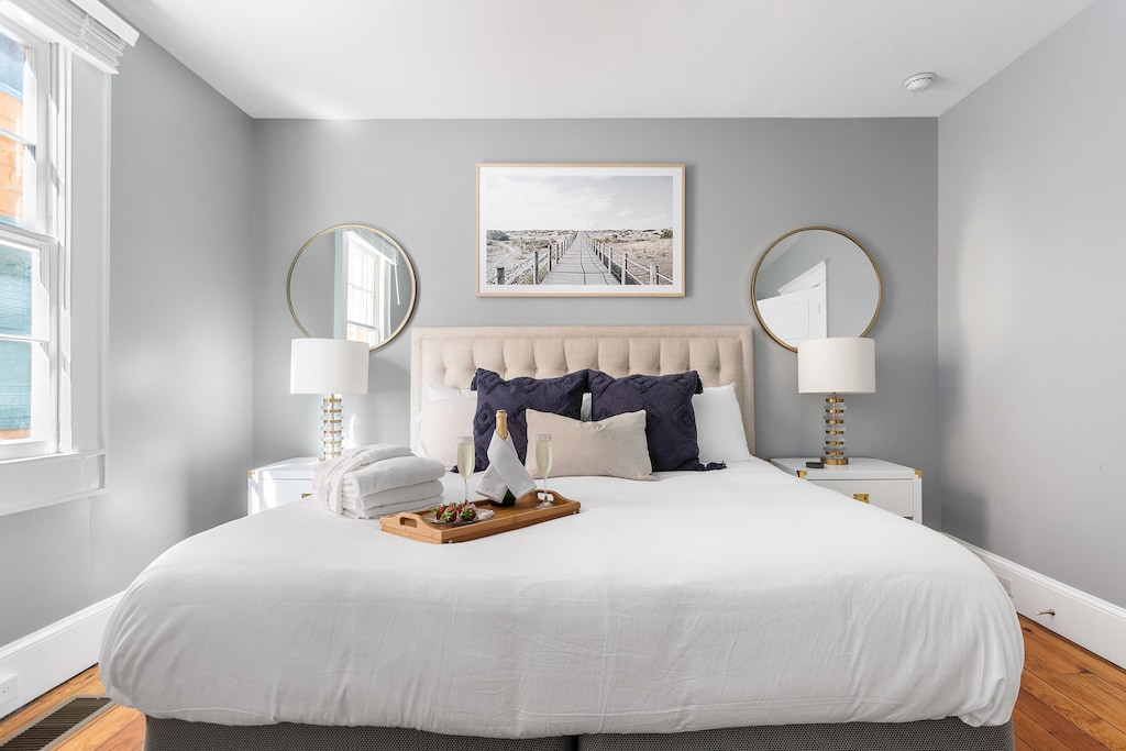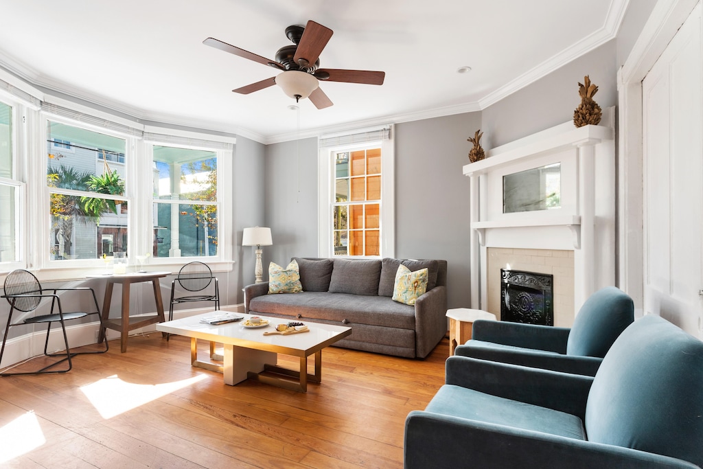 Our spacious two floor home, ‘The Sweetgrass House’, is ideal for groups of 8-10 guests with 4 bedrooms, 4 full baths. Located just off of Spring Street, location and parking won’t be an issue here!
