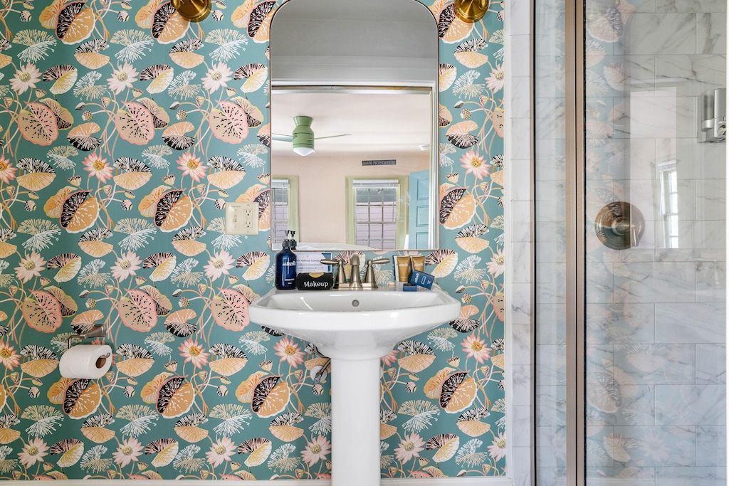 Indigo House features four thoughtfully designed ensuite bedrooms, each with its own personality and bold Charleston inspired style. Two king bedrooms are located on the first floor, one with a walk in tiled shower and the other with a shower and tub combination. Upstairs, you’ll find two additional king ensuite bedrooms, both offering walk in showers and plenty of privacy. Each bedroom is positioned in its own corner of the home, giving guests a peaceful retreat.