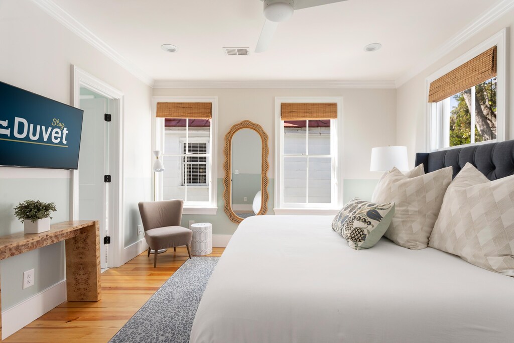 The Brooke Haven is a luxurious two-story Charleston Single home that has recently been fully renovated while maintaining the quintessential charm of old historic Charleston! This home is ideal for large groups up to 12 guests. Each bedroom features a premium King Sized Bed with en-suite private bathing facilities, ceiling fans and Smart HDTVs. Located on Cannon Street, you are within walking distance of numerous restaurants, boutiques and attractions. Rear parking and private entrance ensure convenient ground-level access to the home.