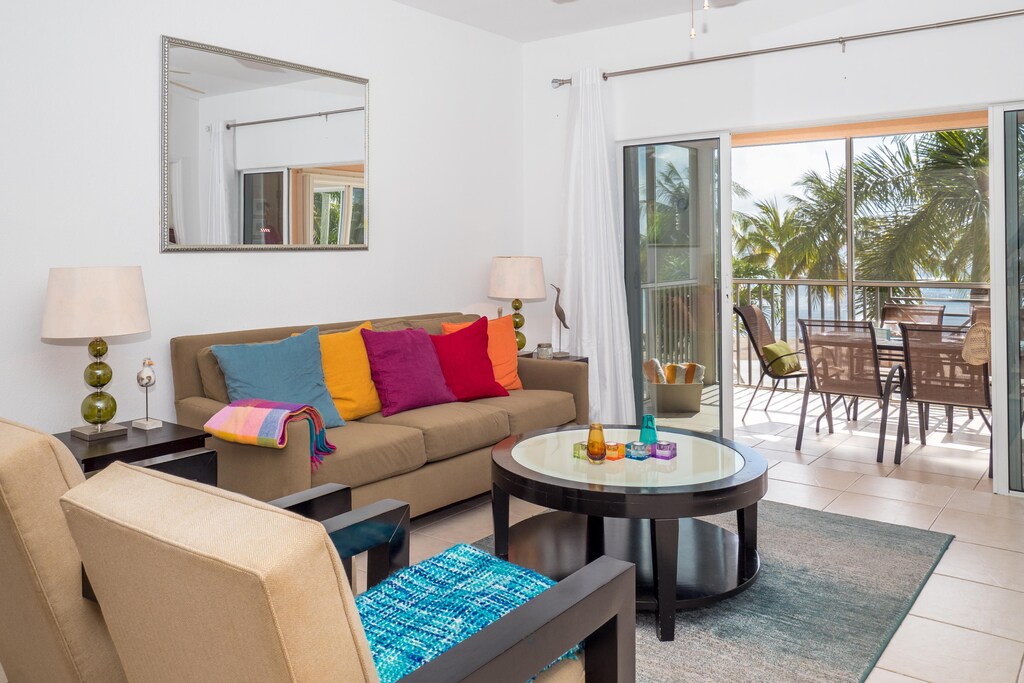Enjoy the privacy of the second floor, while the large windows give a picturesque view of the beautiful sunset and a tranquillity of Kaibo Beach and North Sound.