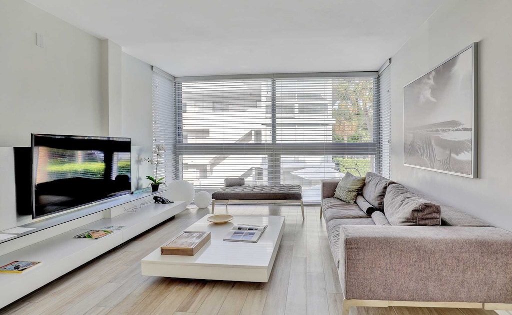 Exclusive unit in Beach Haus Key Biscayne offers a serene island lifestyle a block away from the beach. Fully furnished two bedrooms: one with a King size, the second one with two Twin size beds, separate living area, equipped kitchen, full-size refrigerator, stove-top, oven and cookware. Three story building with open corridors, wrapping an infinity pool, accommodates 31 units. Complimentary parking, cable TV and Wi-Fi. You can visit the pristine Key Biscayne Beach with complimentary access to the Beach Club or, enjoy a bike ride on a Beach Haus bike. Coin operated washing machine and tumble dryer available on the ground level. Cleaning services can be arranged for a fee