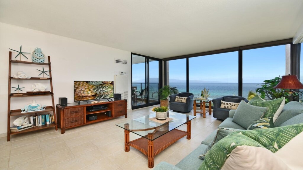 Step into your own private paradise at Mahana 705. Make your way across the room to the lanai, as you open the door you immediately feel fresh Hawaiian trade winds flow across your face as you breathe in the salt air. The direct oceanfront views at the Mahana are breathtaking with amazing line of sight to the outer islands of Lanai and Molokai and some of the absolute best sunsets in the world. With an open concept living space and comfortable updated furnishings, this vacation home provides you with all the comforts of your own, as well as a place to relax after fun filled days in the sun. We can’t wait to see you on Maui, Aloha!