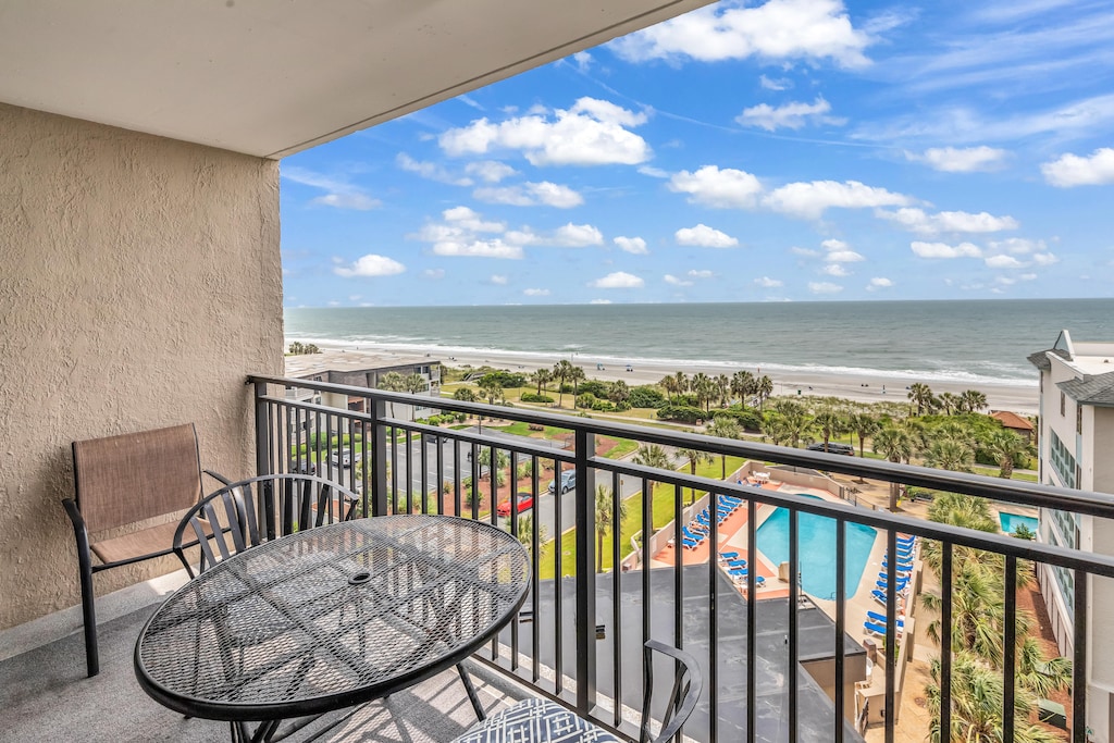 The condo features a luxurious king bed and a comfortable sofa bed, ensuring restful nights after sun-soaked days on the beach. Step out onto the private balcony to soak in the stunning beach vistas, or take a dip in the shared outdoor pools and relax in the spa sauna.