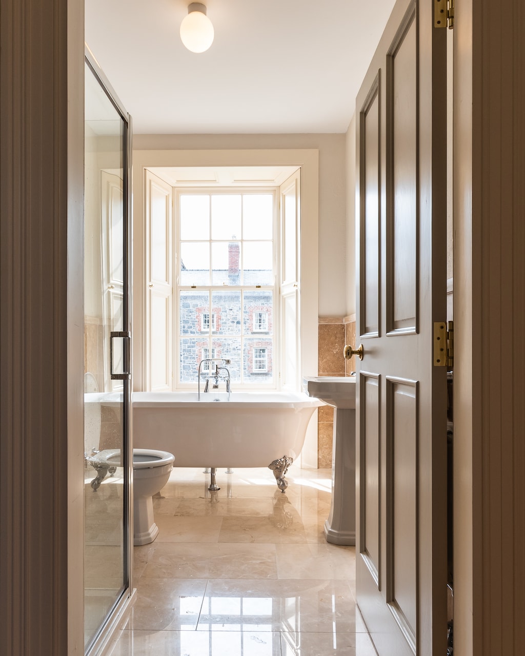 There are eight bedrooms and each of them is ensuite. There are three king bedrooms on both the second and third floors (so 6 king beds in all) and the 4th floor has two small double rooms – ideal for children which share a bathroom between. Two of the king bedrooms have a small sitting area and TV. There is a beautiful stand-alone bath on each of the floors – a real treat to enjoy during your stay.