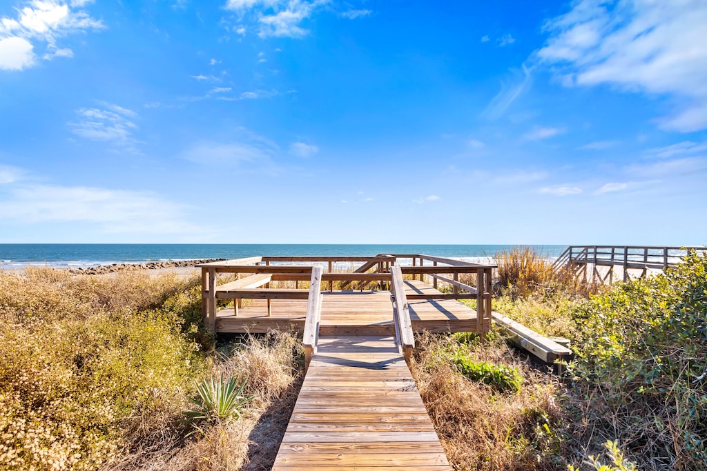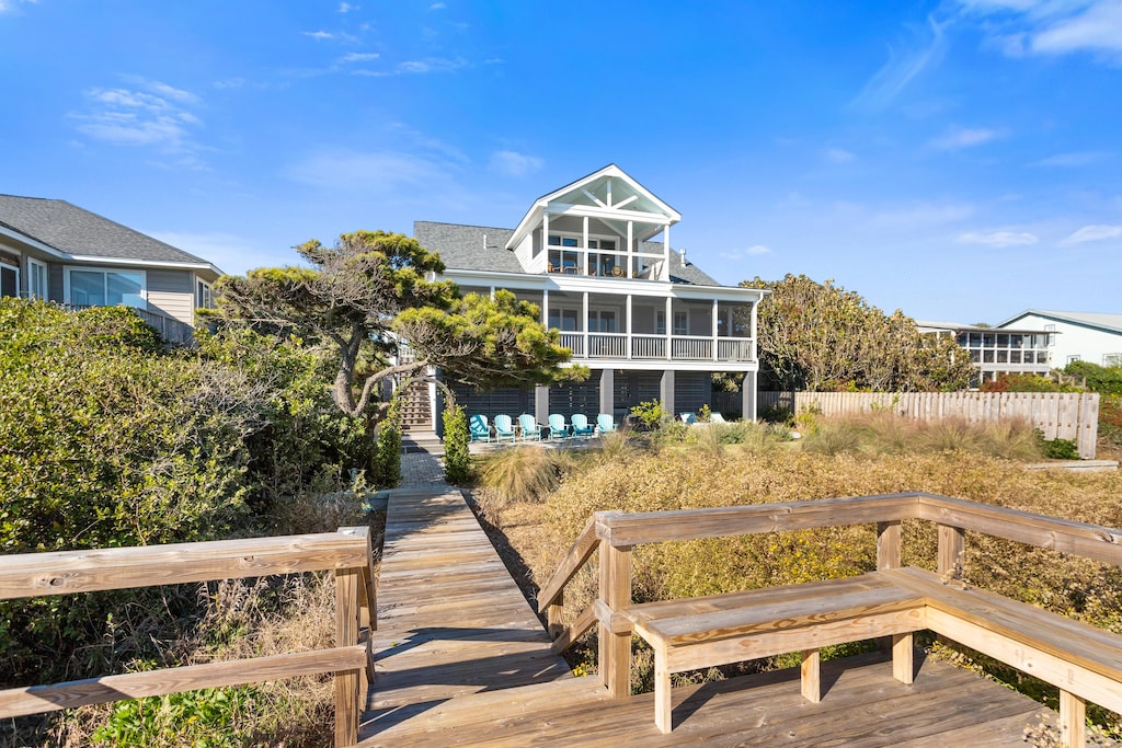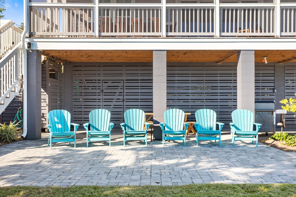 The back patio has a three-burner gas grill and space for alfresco dining. One of the best features of this home can be found here as well: The private beach access! Enjoy the outdoor hot/cold shower as well as a washing station after a long day at the beach.