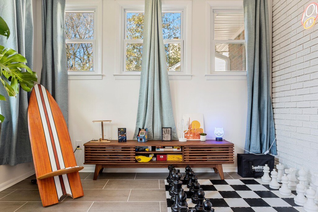 Ms Pac-Man arcade in game room. Take a soak in the hot tub nestled in the private backyard or challenge your family to a ping pong match in the garage. And don’t miss the giant chess set in the sunroom—it’s a blast for all ages! ♟️
