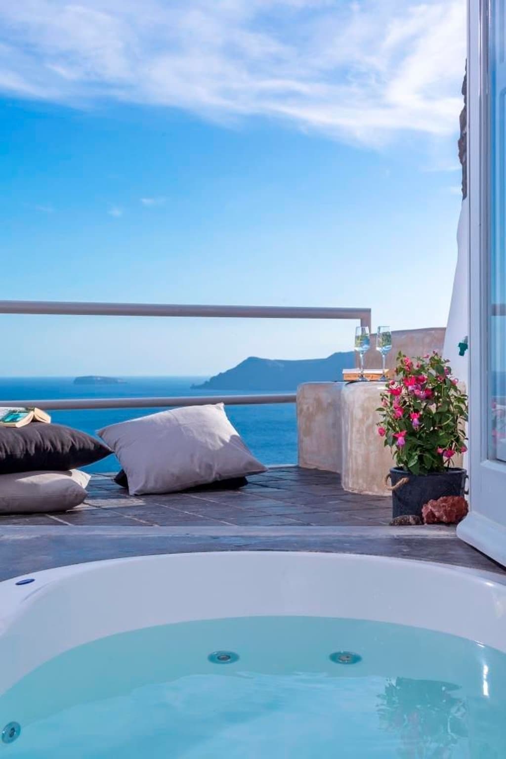 The Villas are seductively nestled on the cliffs of Oia Santorini, where the awe-inspiring sunset dazzles the eye of the beholder with its unreal fiery mix of red, blue, yellow, and orange hues and the infinity of the azure water stretching to the horizon. The villas promise a once-in-a-lifetime vacation experience, with their breathtaking views of Caldera, the volcano and the Aegean, their stunning architecture, immaculate aesthetics, and unsurpassed comfort, style and amenities. Each villa has a unique layout being carved in the volcanic rocks-, indoor and outdoor Jacuzzis and plunge pools, magically hidden fiber optic lighting, ultra-romantic ambiance, a wealth of amenities, and sensational vistas. If you are seeking for villa accommodation in Oia Santorini, look no further than the stunning Villas; where ultimate privacy, luxury and style redefine island chic.