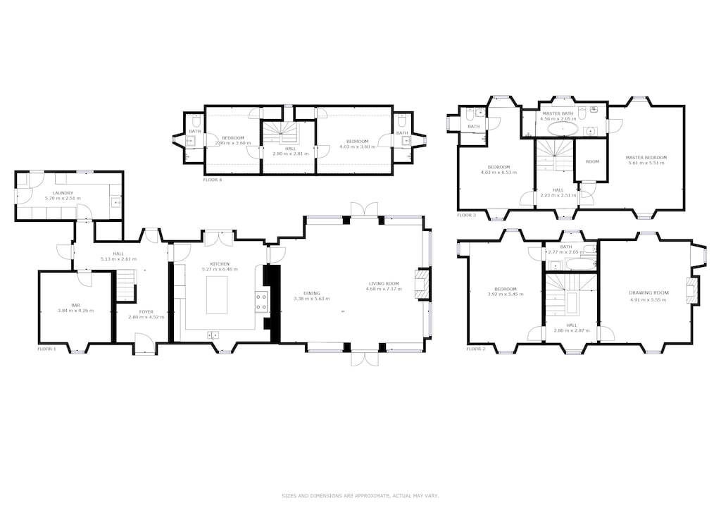 Second Floor- Master suite with super-king size bed and en-suite bathroom with roll-top bath and walk-in rain shower- Bedroom with two single beds and en-suite bathroom with walk-in rain shower (can be set up as a super-king room, please request which you would prefer at time of booking)