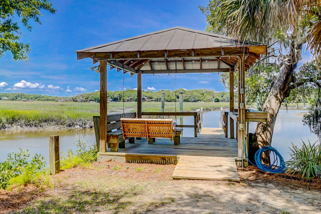 Whether you enjoy boating, birdwatching, crabbing, fishing, kayaking, or just a spectacular view of Edisto’s beauty, the vantage points from the expansive, wrap-around, covered deck and covered pier head on the private dock are nothing short of awe-inspiring. If boating is on your vacation agenda, take advantage of the private boat landing just steps from the house. Bring your fishing poles and crab traps and cook your day’s catch on the ground-level patio while taking in scenes of the salt marsh that many species of birds and wildlife call home. This home is also perfectly situated just over a mile from the sandy beach for those who want to take in the glorious southern sun. Don’t forget your cameras and reignite your love of the outdoors - all you need is waiting for you.