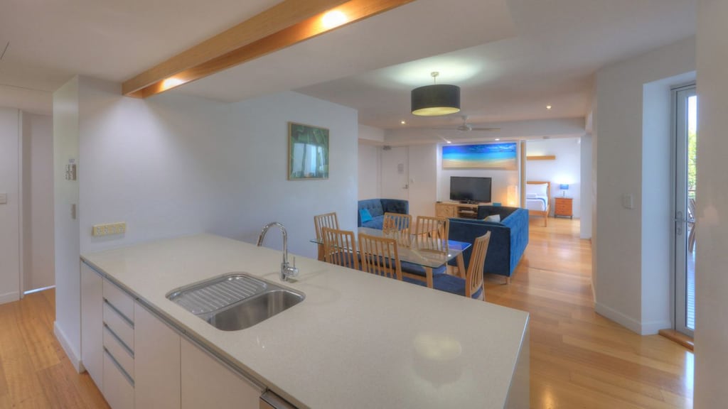 Apartment 6 is on the third level setback from the front with views to the water and foreshore from the balcony. This apartment features 2 queen beds and 1 double bed. There is lift access.
