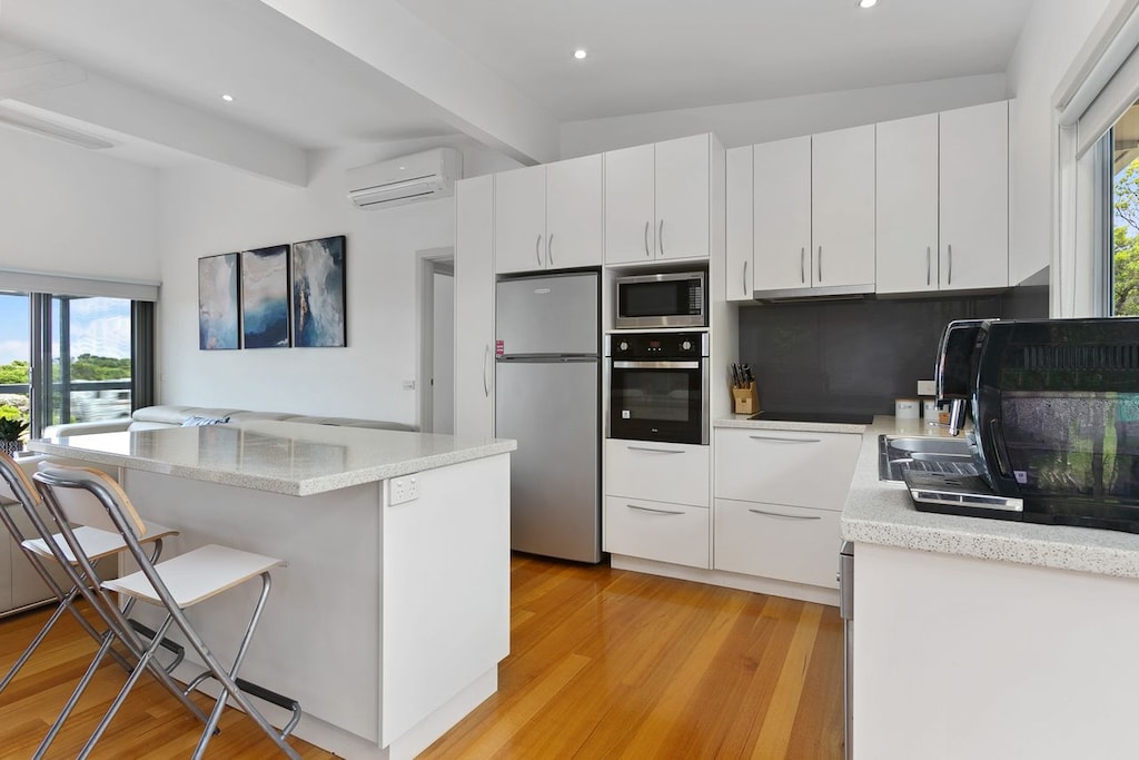 Guests will feel right at home from the moment they step through the front door into the light filled living space. Filled with modern recliner sofas, books, toys and all the conveniences and luxury of the home including high speed internet.
