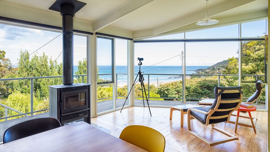 In the warmer months enjoy the salty sea breezes, the sound of the waves rolling in and the smell of the bush from the deck or soak up the views in air-conditioned comfort.