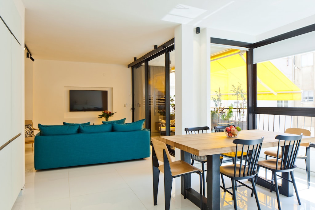 Spoil yourself to a vacation minutes from Tel Aviv’s sandy beach! Our apartment was renovated in August 2017 and features 2 bedrooms, 2 bathrooms, and a magnificent veranda. It is located on Ben Yehuda and Gordon Streets, a short walk from the heart of Tel Aviv’s vibrant urban life, the restaurants, cafes and clubs of Dizengof.