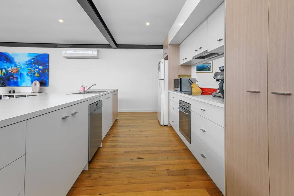 Featuring upstairs living area opening to a north facing deck area. The large open plan kitchen and dining offers vistas toward the Apollo Bay township.