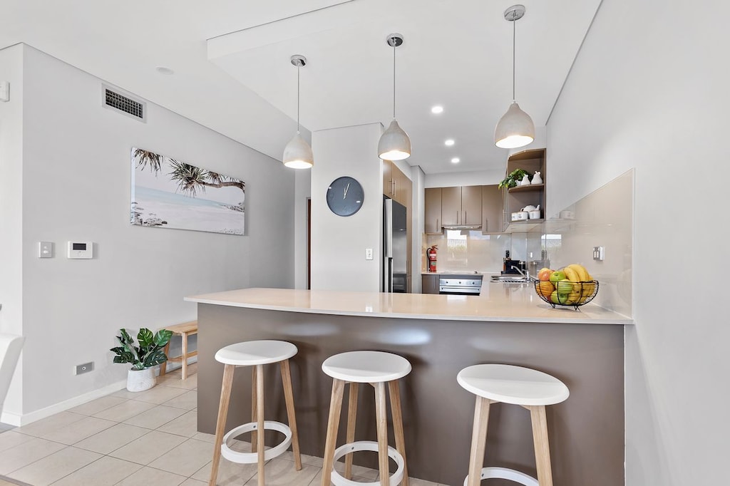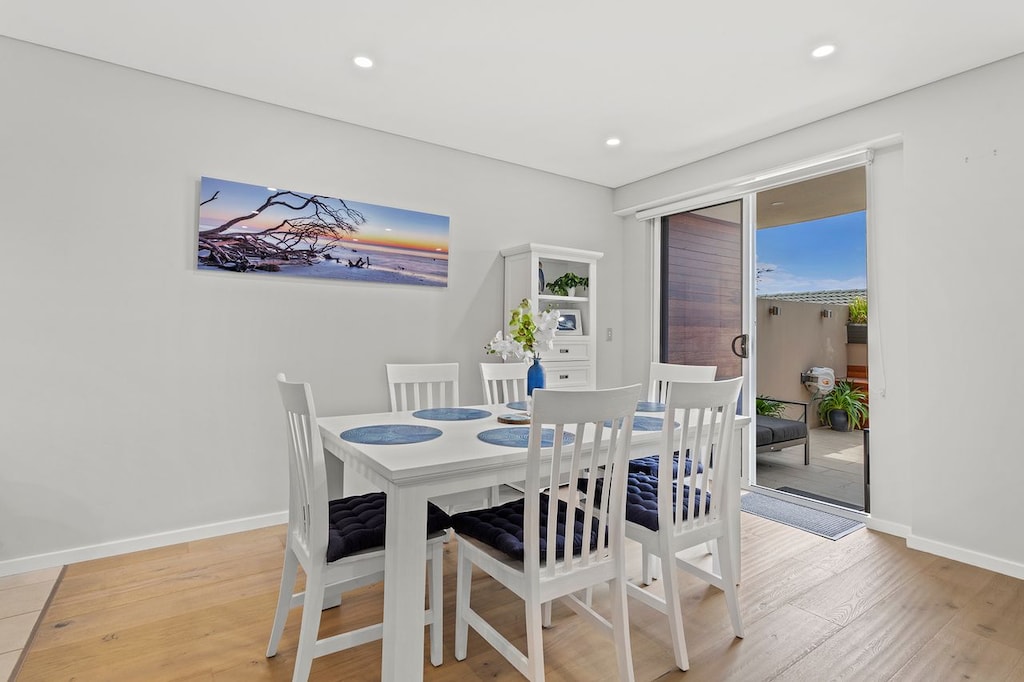 This modern, stylish apartment is an incredibly welcoming space to come home to after a day out exploring the coast. An enviable wraparound courtyard/balcony boasts plenty of outdoor entertaining space, and the fresh and inviting open plan living area offers a comfortable lounge, ducted air-conditioning and Smart TV with free Wifi. The dining area has a 6-seater dining table, and the contemporary kitchen is fully equipped with a dishwasher, coffee machine, fridge/freezer, cooktop, oven and microwave. All 3 bedrooms have access out to the private courtyard, and the main bedroom is comfortably fitted with a queen bed and private ensuite with shower and toilet, while the 2nd bedroom has a double bed and the 3rd offers a bunk bed. Luxuriate in the spa bath in the main bathroom, which also has a separate shower and toilet, and there is an internal laundry fitted with a washer and dryer.