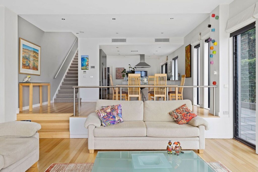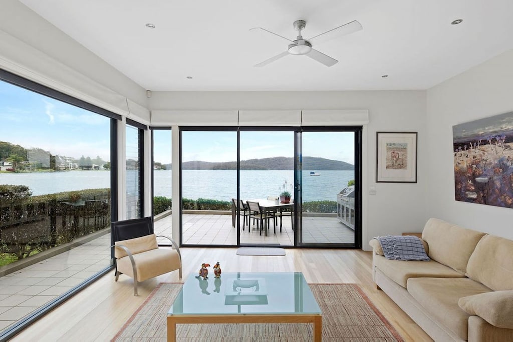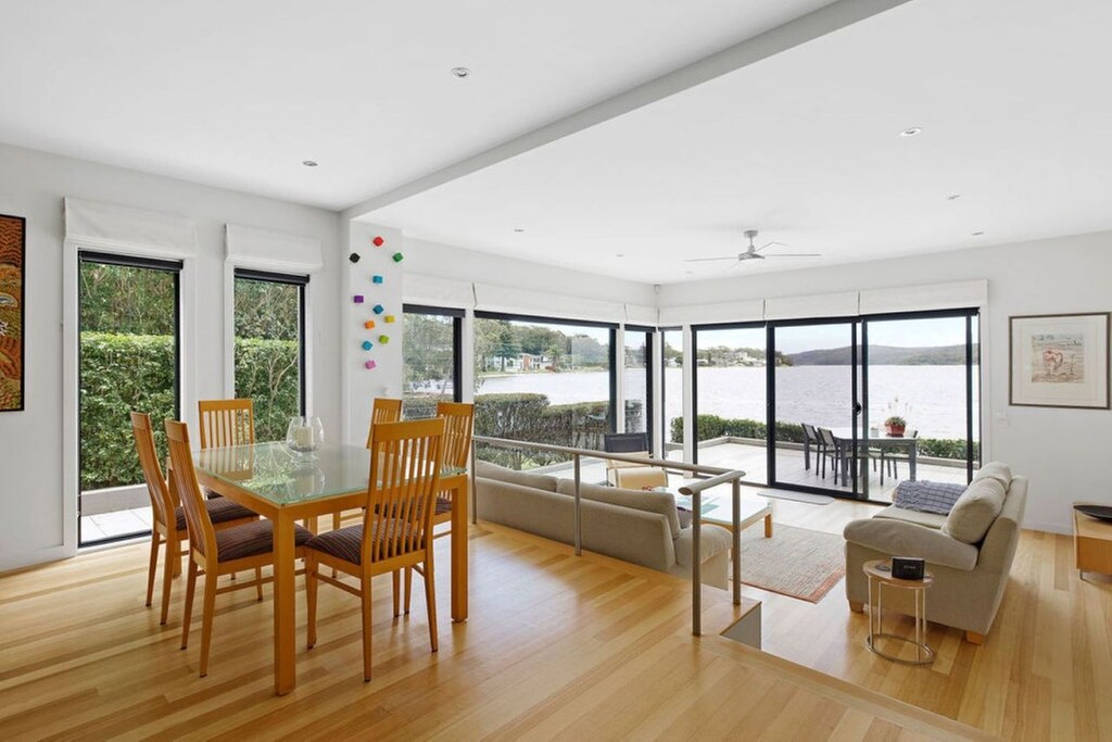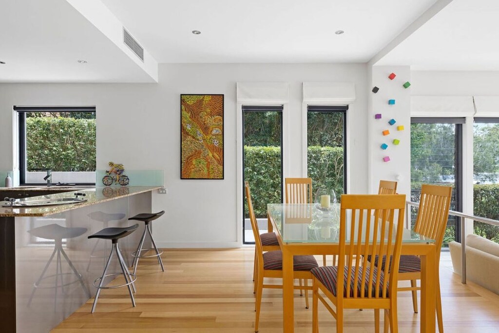 Sit back and soak up the peaceful ambiance from your private deck. Cook up the day’s catch on the outdoor BBQ, breathe in the fresh, salty air and sip on chilled wine to the sound of gentle ripples in the water. Extensive use of glass on the water side of the house allows the views, natural light and seabreeze to flow throughout the 2 levels creating an incredibly warm and inviting interior, and ducted air-conditioning offers even more comfort all year round. The ground floor features open plan living and entertaining with lounges, a 6-seater dining table and a modern, fully equipped kitchen including a dishwasher. There is also a 2nd lounge area with a big screen TV, powder room, and a laundry with washer and dryer.
