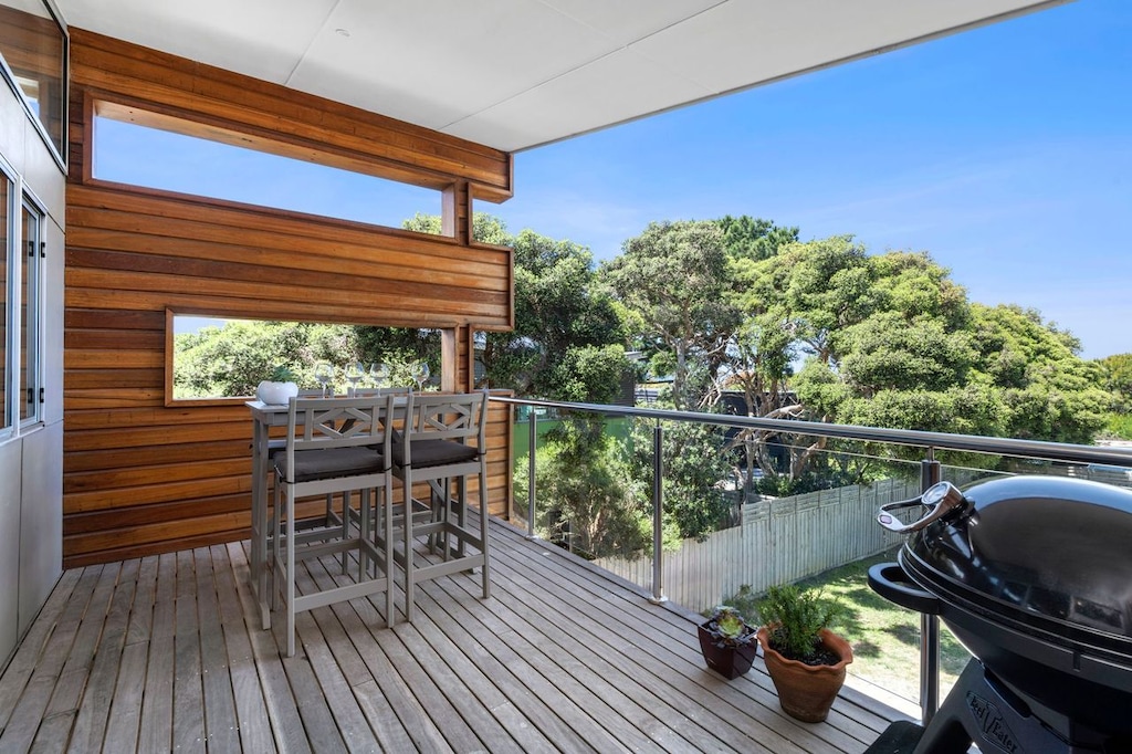 Featuring a light-filled living area and well-appointed kitchen with stainless steel appliances, you’ll enjoy the meticulous attention to detail. Open plan living and dining opens out to a covered deck with outdoor seating for 4 and a Weber BBQ, perfect for relaxing with friends or family on balmy summer evenings.