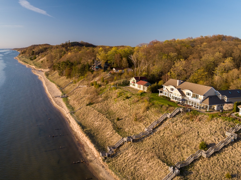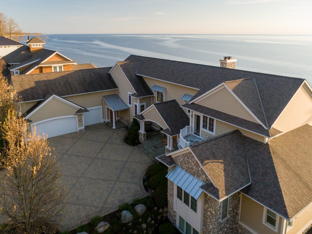 Sweeping views of the Lake Michigan shoreline await you in this luxuriously expansive vacation home. Your home for over 8,500 square feet of beachfront escape. Whether for a small gathering of friends or generations of family, this well-appointed lakeshore will comfortably sleep 16 guests with 5 1/2 bathrooms, several of which are en suite.