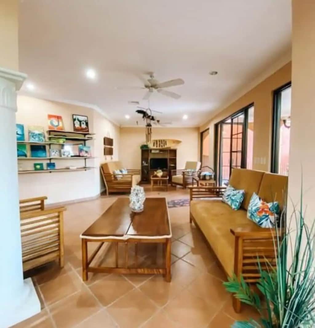 This is a lovely neighborhood called Isabella and it is located close the entrance of the community making it easy to walk to the town or only need a rented golf cart to get around town. You are in a private community and your villa is private. It is a very quiet home inside. You are about 200 meters from grocery stores and about 400 meters to the main town. The beach is 800 meters from the villa. You can have private tours that will pick you up from the home and take you to anywhere you need to go. Our offers concierge services from chefs to tours to private shuttles to other areas if you are traveling in Costa Rica. Just ask us for assistance.