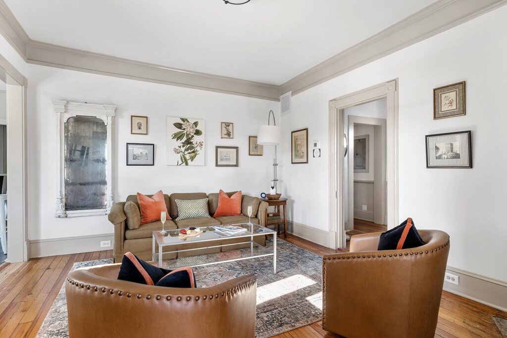 Welcome to La Maisonette d’Angeline, a beautifully renovated upstairs retreat ideal for 6-8 guests. Nestled on the second floor of a historic home, this thoughtfully designed space offers comfort, charm and convenience in the heart of Charleston.