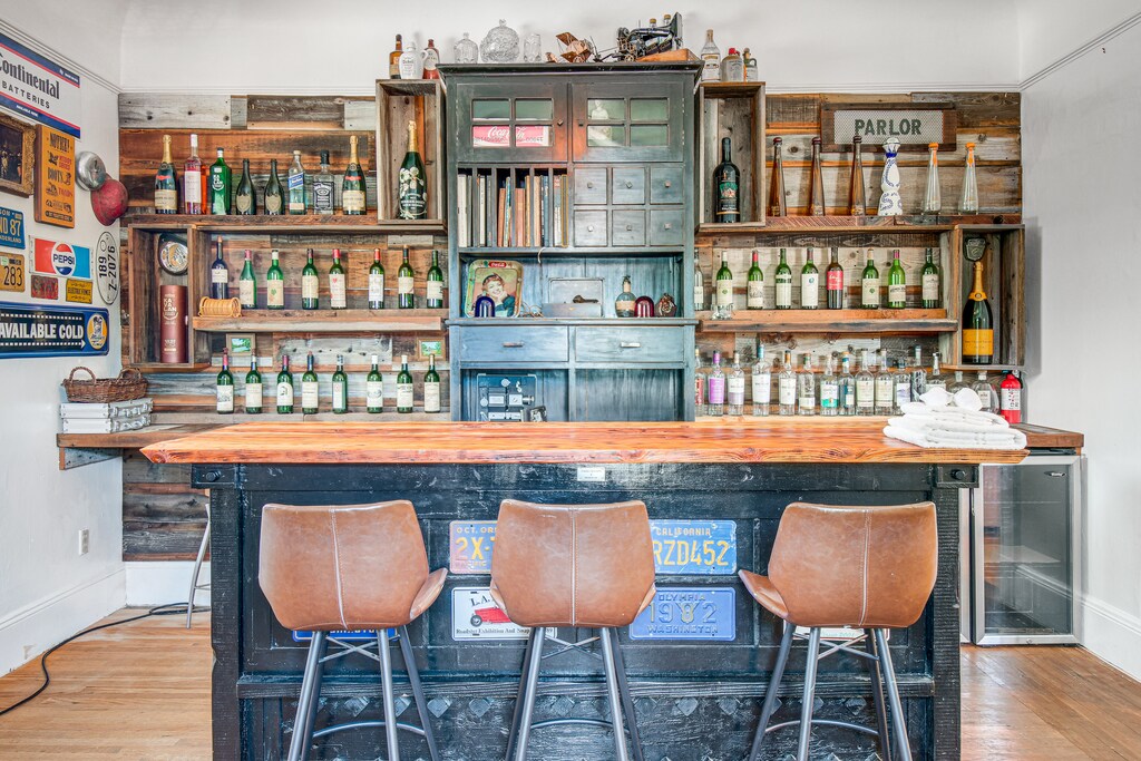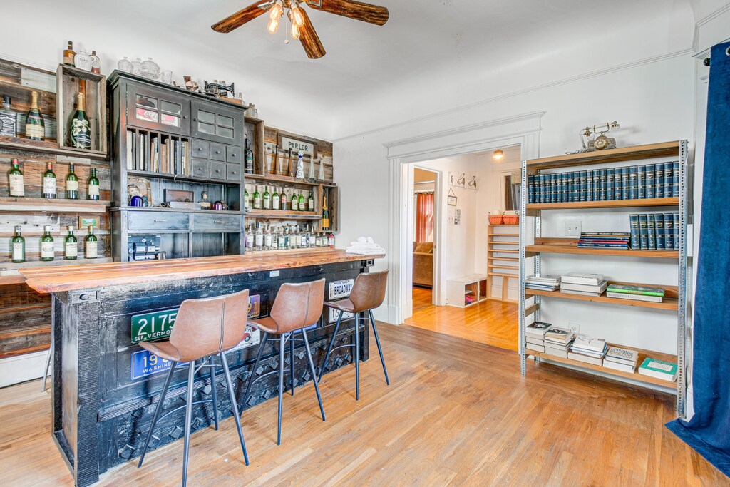 - Bar w/ seating, home office, walk-in closet, ceiling fans
