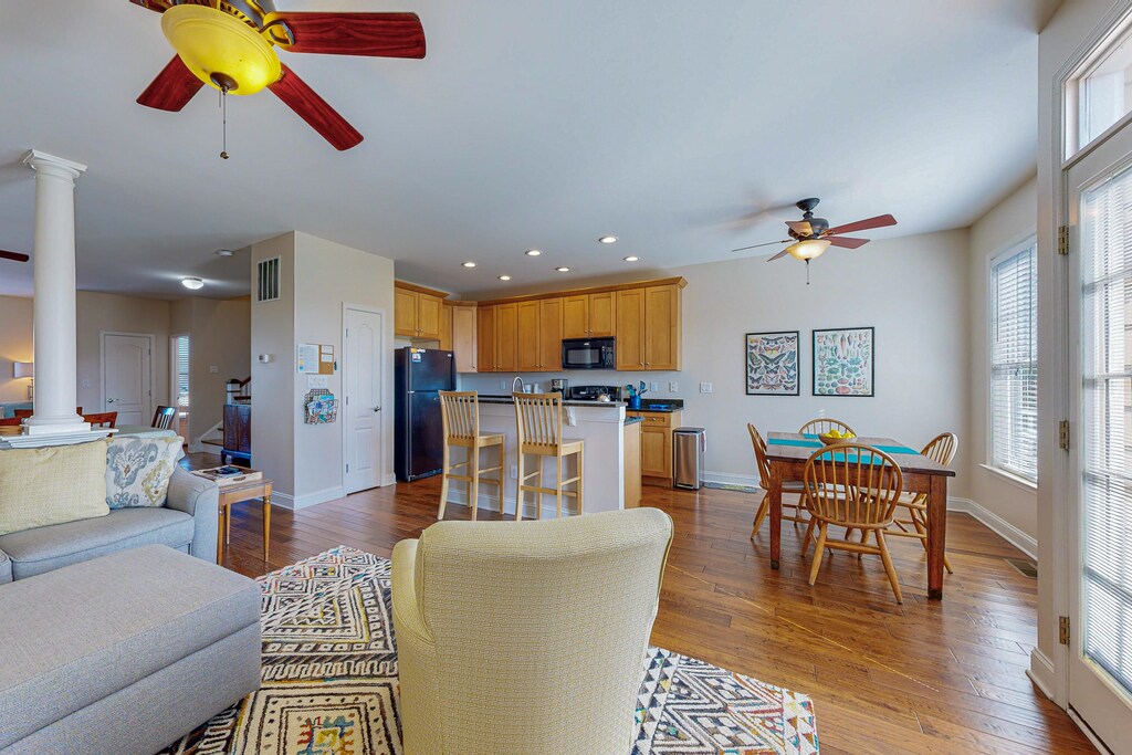 Make this stunning beautiful dog-friendly townhome in one of Rehoboth Beach’s most sought-after communities your next home away from home and enjoy a memorable getaway! The community is a lovely walkable community with easy access to downtown Rehoboth Beach and the serene Junction and Breakwater Trail without going on Route 1. Enjoy the large community pool, fitness and community center, tennis courts, and basketball courts for guest use. This darling retreat offers plenty of communal gathering spaces yet it’s large enough for privacy and quiet nooks to relax. Meals alfresco can take place at the outdoor dining area on the patio or on the second-floor deck, which also features a gas grill. There are four bedrooms (bedroom 3 is open to the first-floor living space) and three and a half bathrooms.