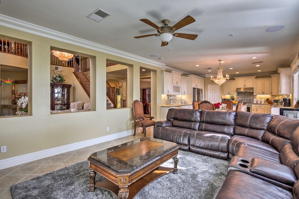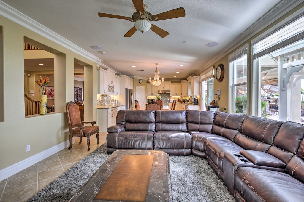 OUTDOOR LIVING: Pool w/ waterfall, pool toys, outdoor kitchen w/ bar top, covered patio, 2 gazebos w/ dining tables, 2 balconies, racquetball, snorkeling/scuba gear, horseshoes, beach towels