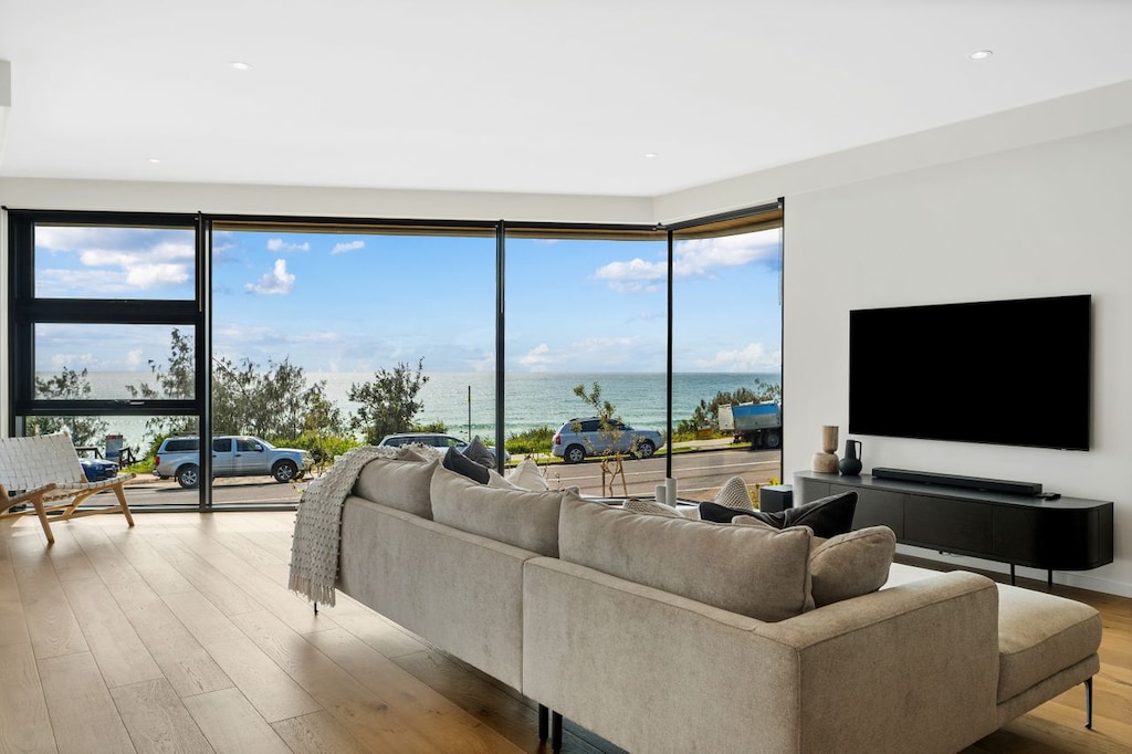 This apartment has amazing beach views directly opposite Coolum’s First Bay Beach.
