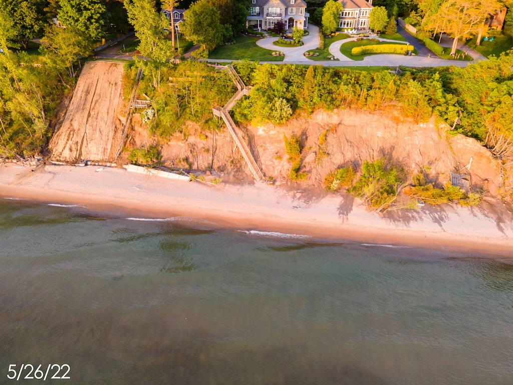 This home is located on a wooded lot directly across from private Lake Michigan beach access by stairs. The front porch is a perfect spot to enjoy the views and the large backyard greenspace features a firepit , patio with gas grill and dining table , built in outdoor fireplace and outdoor shower.