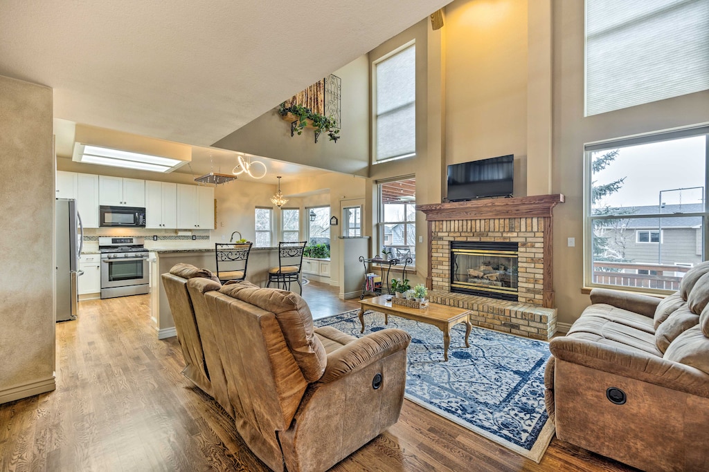 Experience all that Colorado Springs has to offer from this vacation rental. Get your sweat on at the Manitou Incline or feed the giraffes at the Cheyenne Mountain Zoo. After a day of outdoor activities, grill out on the deck and finish the night with a bonfire around the fire pit! Boasting 3 bedrooms, 2.5 baths, and a loft, this family-friendly home is the ideal home base! Whether you’re in town to visit an aviator or explore Colorado’s high country, this rental is sure to fit the bill!