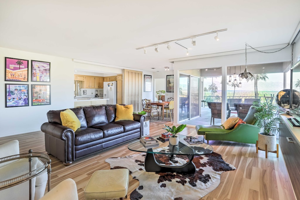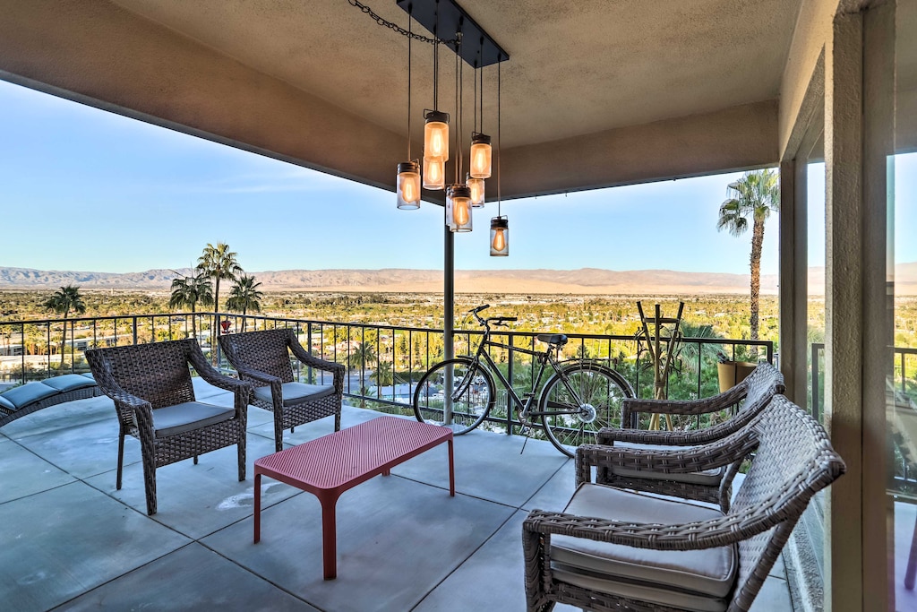 Embark on a rejuvenating retreat at this beautiful 3-bedroom, 2-bath Palm Springs condo! Boasting panoramic views of the Coachella Valley, this vacation rental ensures a memorable stay for you and your loved ones. Catch some rays by the community pool, fire up the gas grill, or take in the scenery from the spacious deck. If you’d rather venture out, wander around the Moorten Botanical Garden, visit the Palm Springs Art Museum, or attend an event at the Empire Polo Club!