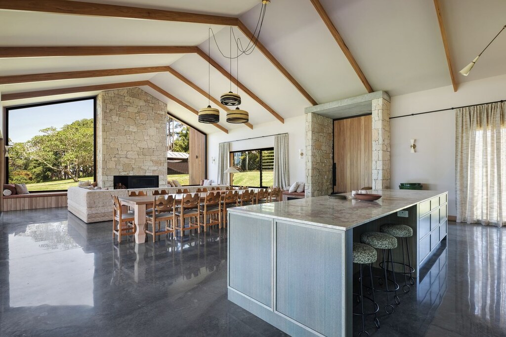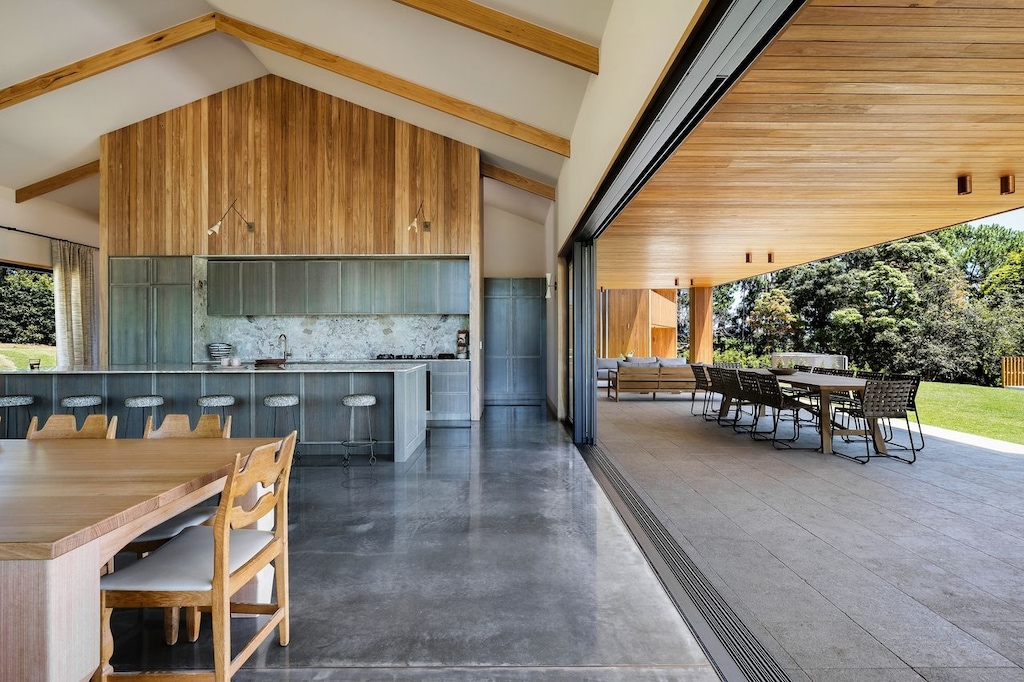 Inside, the natural light throughout evokes a sense of peace and well being. Ease and elegance blend skilfully with cutting edge high spec - wall to wall retractable glass, soaring ceilings and polished concrete floors. Uber chic bohemian textiles, evocative art, locally crafted furnishings, create a home of considered generosity, revealing interior spaces that are sumptuous and plentiful.