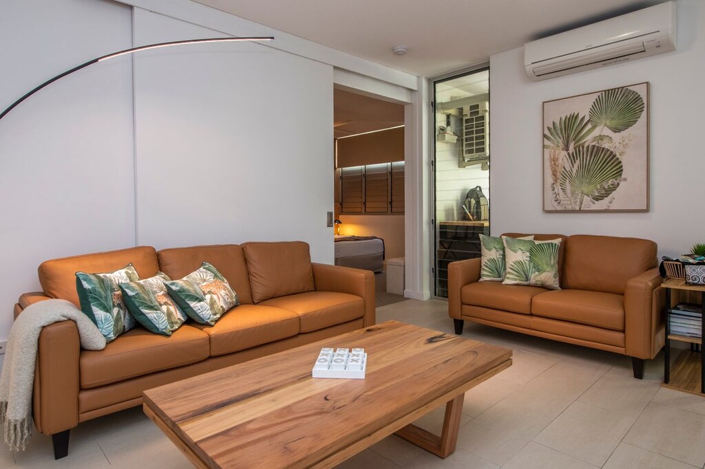 Sliding glass doors open onto a generous balcony, where you can enjoy your morning coffee with glimpses of the sparkling water or sit back in the evening & watch the sunset on the granite rocks of Magnetic Island.