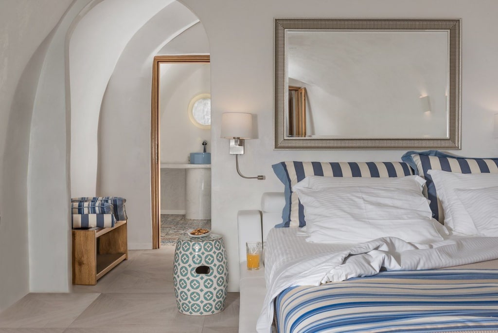Nestled into the iconic cliffs of Oia, this elite sanctuary offers unobstructed vistas of Santorini’s caldera and the volcanic landscape, providing an idyllic backdrop for your luxurious retreat.