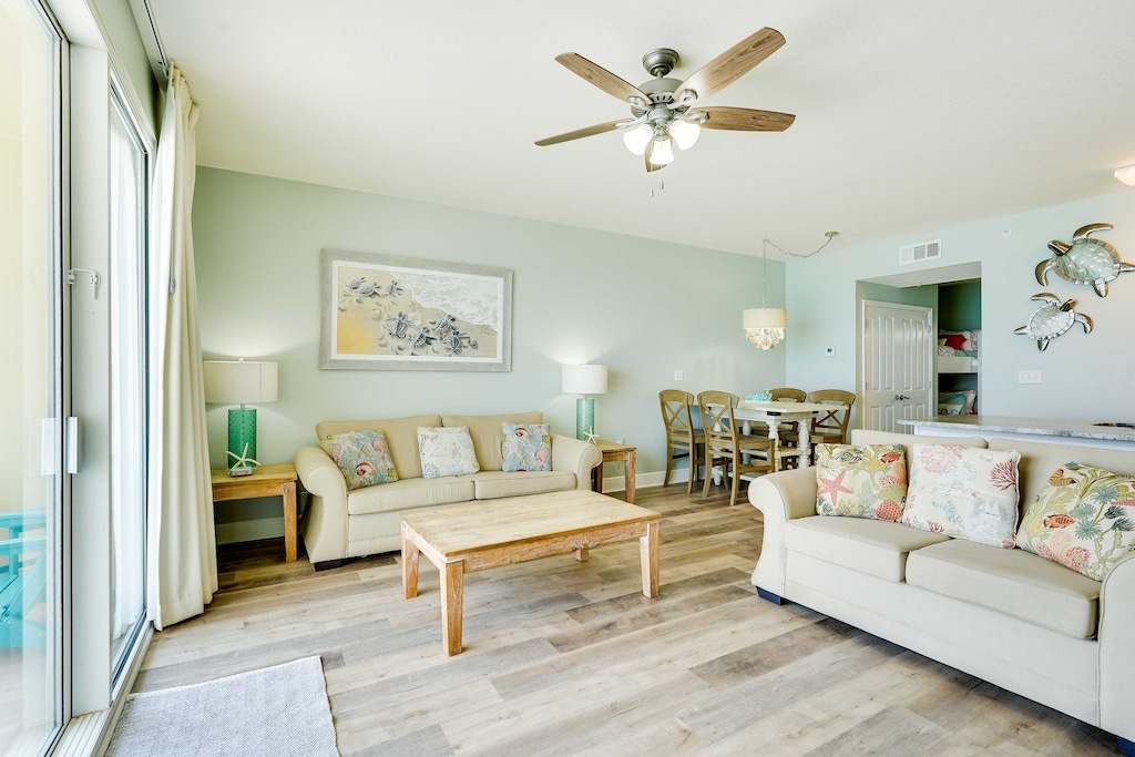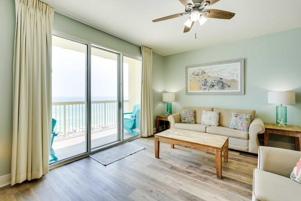 Set on the west end of Panama City Beach, this coastal 1-bedroom, 2-bathroom vacation rental is the perfect beachside getaway! This condo features chic interior decor, a private balcony overlooking the water, and a fully equipped kitchen. Spend your days enjoying the Celadon Beach Resort amenities including 2 pools and hot tubs, a fitness center, and more. When you're not lounging on the on-site beach, head into downtown to grab a bite to eat or take the kids to WonderWorks Panama City Beach!