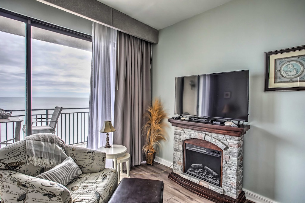 Take off your business suit and slip into flip flops to stay at this high-end Myrtle Beach condo! Boasting an uninhibited view of South Carolina’s Atlantic coast from the covered balcony, this 1-bedroom, 1-bath vacation rental is a romantic spot close to a variety of coastal activities such as boating, surfing, jet skiing, and swimming in the resort pool. Brush the sand out of your hair, then head to clubs and bars like 8th Ave Tiki Bar & Grill to experience the vibrant nightlife of the area!
