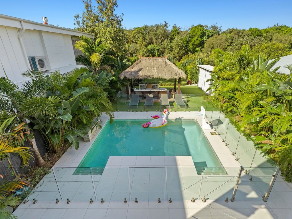 Your resort style backyard is surrounded by lush tropical gardens creating a lovely, private atmosphere. Relax & unwind on the outdoor lounge setting, laze around on the sun lounges whilst the kids play in the pool, huddle around the firepit or simply wander out your back gate to the beautiful Casuarina Beach & cycle track.