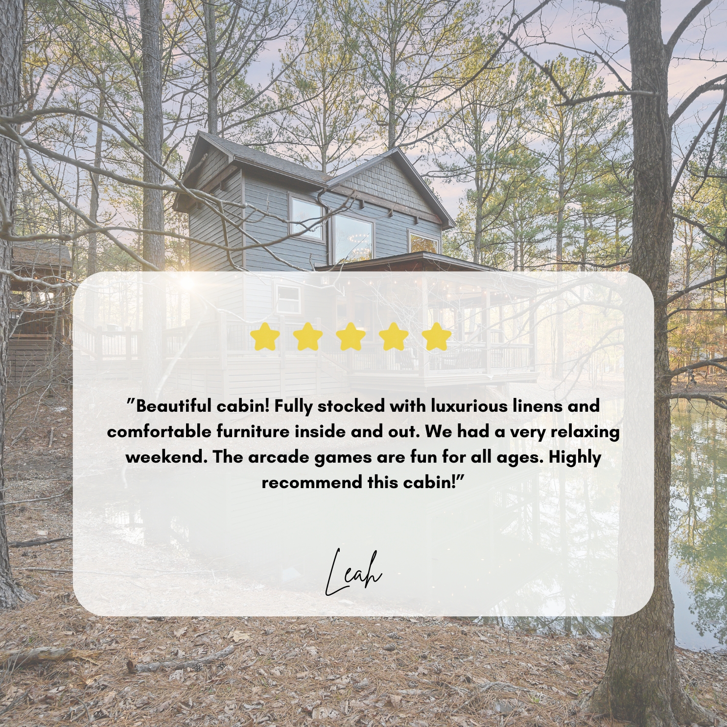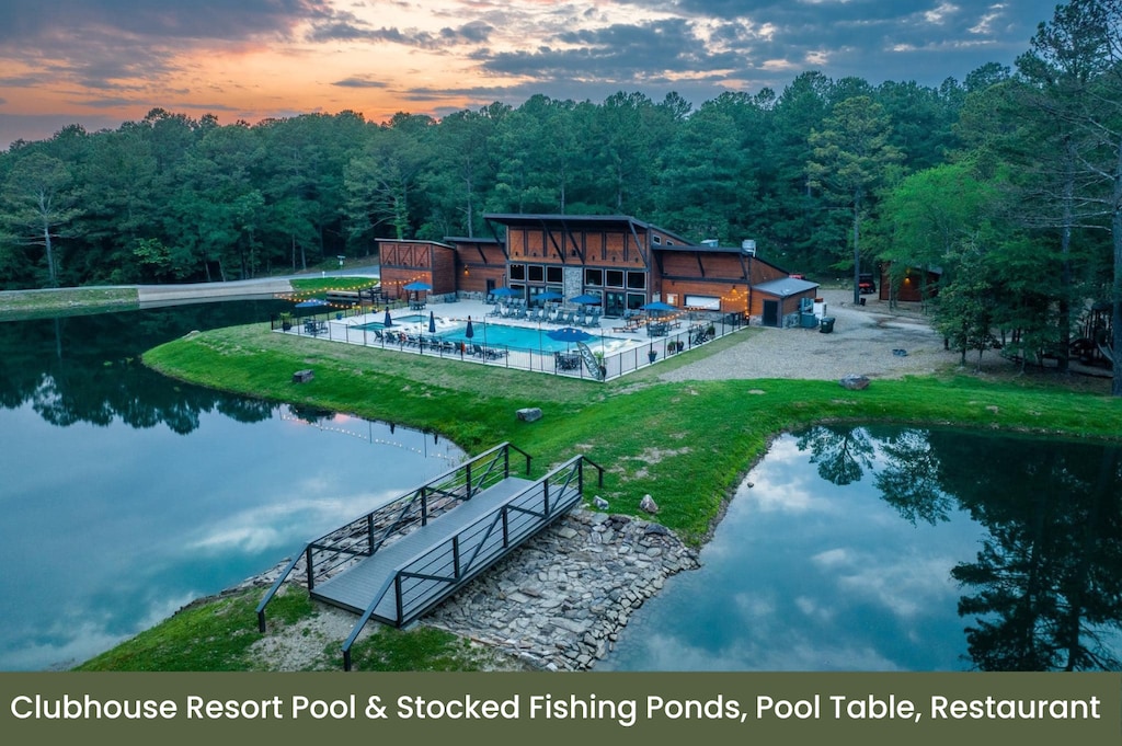 Welcome to Cedarwood Serenity, a brand-new, beautifully designed cabin nestled above the tranquil, stocked fishing pond at Pine Lake Resort. This cozy yet refined two-bedroom, two-bath getaway offers the perfect escape for couples or small families looking to unwind in comfort, connect with nature, and enjoy resort-style amenities just steps from your door.