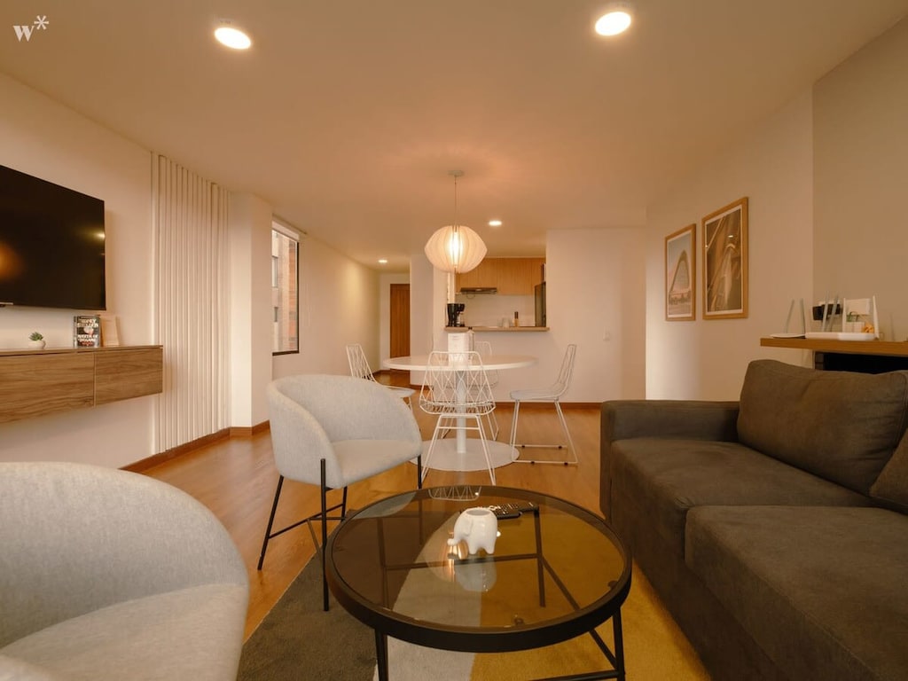 Located in the best area of Bogotá, near Parque Virrey. Ideal for business trips, couples or solo travelers who want to stay in a spacious modern Penthouse with a private terrace. You will be walking distance from the shopping center (Andino), restaurants, top gyms, supermarkets, bars and coffee shops in the city.