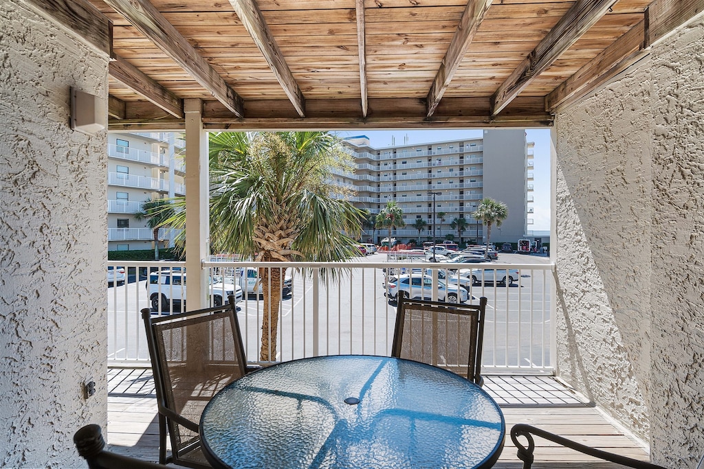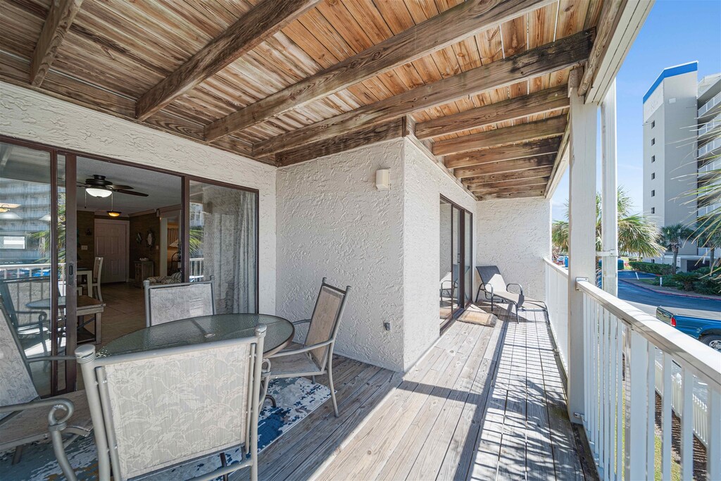 This is a two-bedroom, two-bath condo that is nicely updated. The condo has an open-concept kitchen, dining area, and living room. The kitchen has cookware, dishes, and all essentials needed while on vacation. Just off the living room is a spacious balcony to enjoy your morning coffee and fresh ocean breeze.
