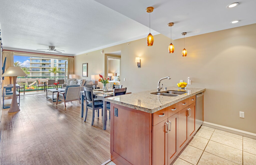 Konea 306 is an expansive two-bedroom, one-bathroom suite boasting views of what West Maui is most famous for—the blue Pacific Ocean and lush West Maui Mountains. With its den converted to a second bedroom, this rare offering provides the space and privacy of an additional bedroom without the price tag of a standard two-bedroom, two-bathroom.