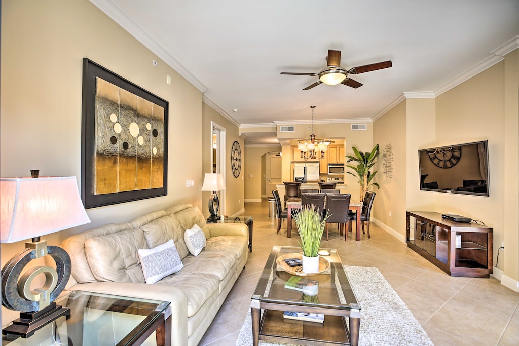 With a prime location just 8 miles from the coast and mere steps from the hustle and bustle of Coconut Point, this 2-bedroom, 2-bath Estero condo offers the perfect introduction to Southwest Florida! Throughout your stay at this beautiful vacation rental, feel free to stretch out and relax by the pool, get your sweat on in the on-site fitness center, or book a day on the links at one of the nearby courses. For a bit more adventure, take in the breathtaking scenery at Lovers Key State Park!