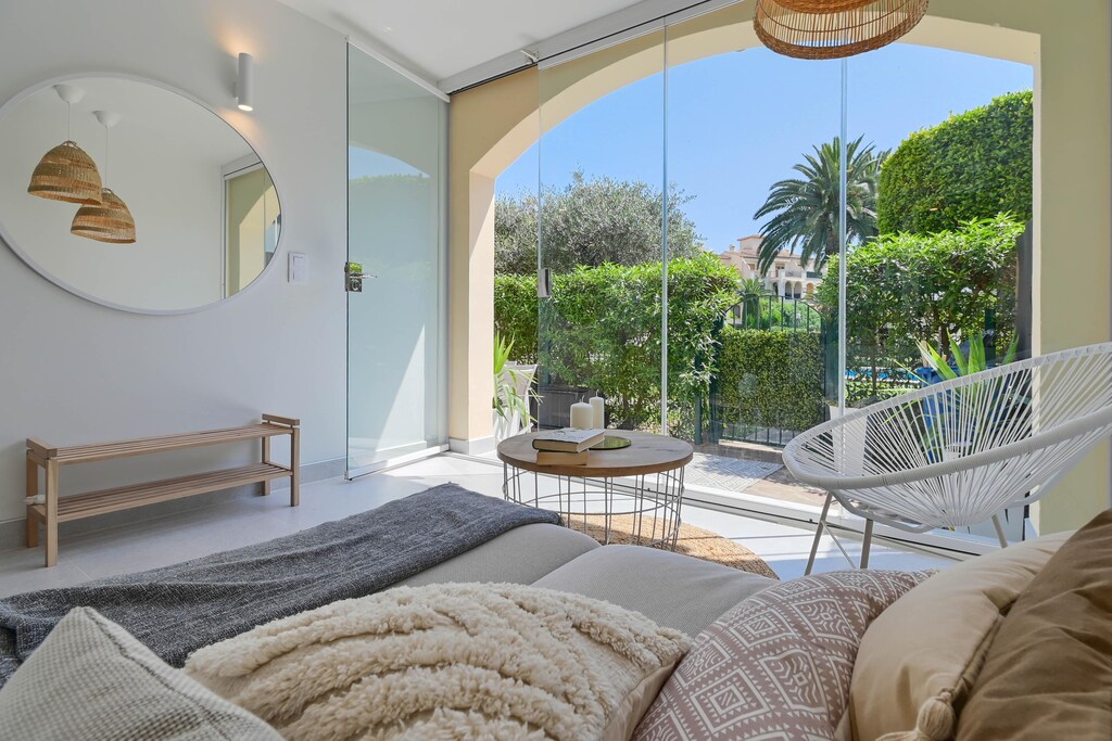 Modern and comfortable apartment with communal pool in Javea, Costa Blanca, Spain for 9 persons. The apartment is situated in a residential beach area, close to restaurants and bars, shops, supermarkets and a tennis court, at 1 km from El Arenal, Javea beach and at 1 km from Mediterráneo.