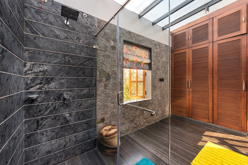 This large farmhouse across two floors has; the ground floor with one bedroom, and two bedrooms on the second floor. The two main bedrooms have attached bathrooms. A separate kid’s room or attic has a glass ceiling open to the sky for stargazing, which can keep the kids merrily occupied.