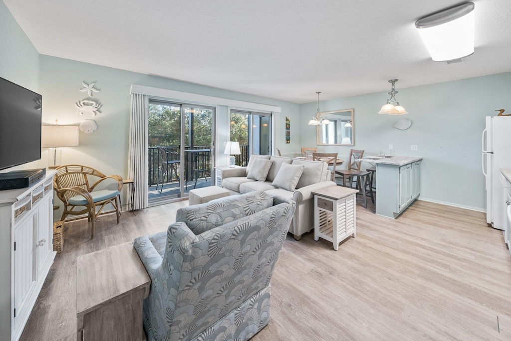 Recently renovated, Inlet Dunes #105 has a great updated interior, providing accommodation for up to six guests. The layout features a king bedroom, a charming twin bunk nook, and a queen sleeper sofa, ensuring comfort and convenience for all. Guests of Inlet Dunes #105 can relish direct access to a private walkout patio offering picturesque views of the gated pool and community grilling area. Additionally, a private beach gate leads guests to the Inlet Beach Regional Access, equipped with amenities such as restrooms, outdoor showers, ample parking, and picnic areas.